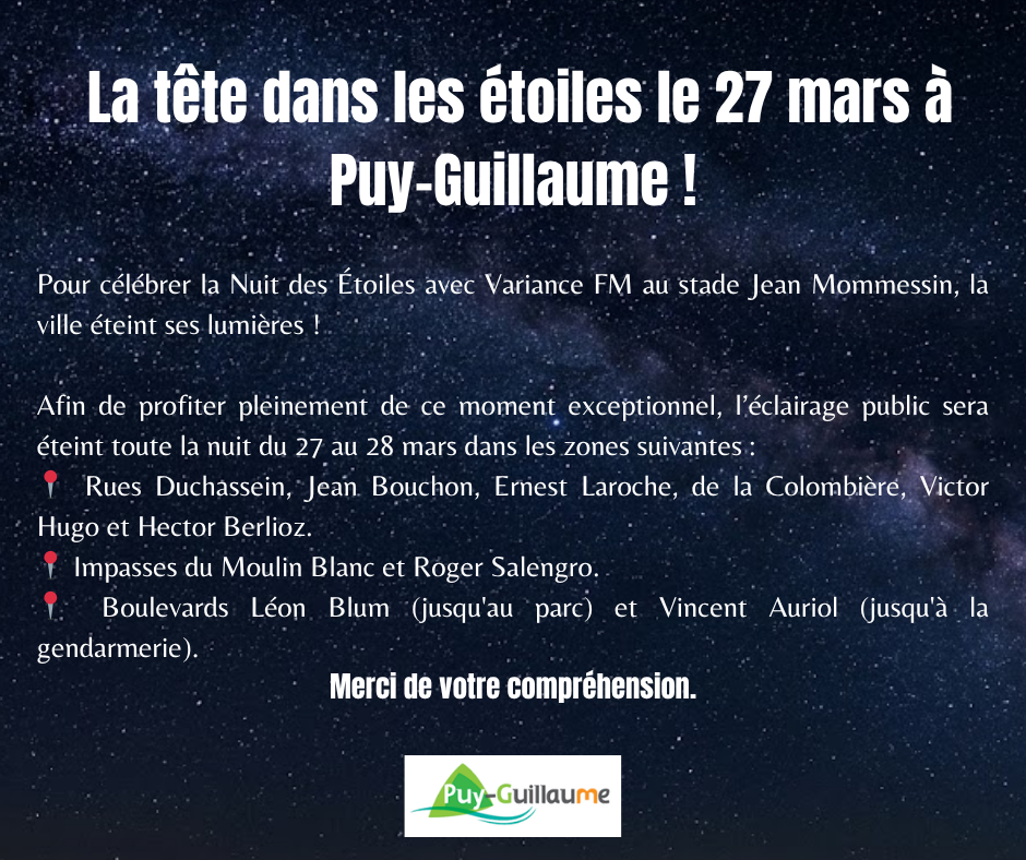 • 📢 27.03 Avis de coupure d’Ă©clairage : Place Ă  la Nuit des Étoiles !