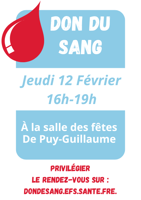 Don du sang + Ajouter à mon Agenda Google + iCal / Outlook export 00 jours 00 heures 00 minutes 00 secondes Date Fév 12 2026 Heure 16h00 - 19h00 Partagez cet événement